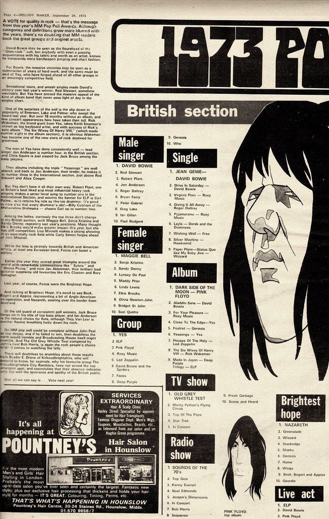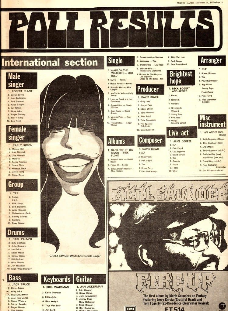 MELODY MAKER READERS' POLL RESULTS 1970.