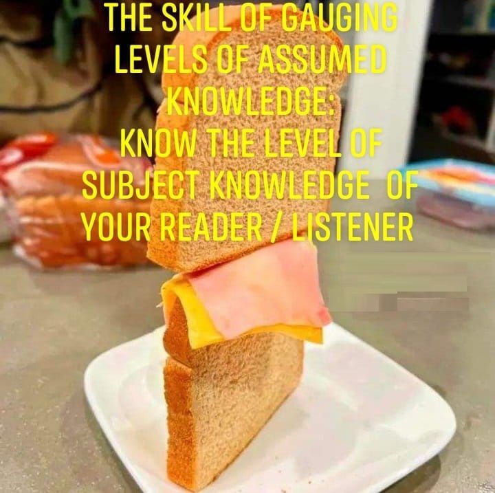 Gauging the level of 'assumed knowledge': how much knowledge of the subject that you're describing does the reader/ listener have...? ðĪ