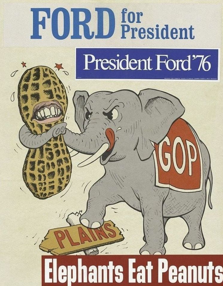 Quietly spoken, ever smiling Democrat Party candidate Jimmy Carter seemed to be a calming, reassuring alternative to the brash politics of the previous few years; and in any case, President Ford's position was tarnished - and so too the Republican Party; a Carter victory seemed inevitable - and so it proved to be.