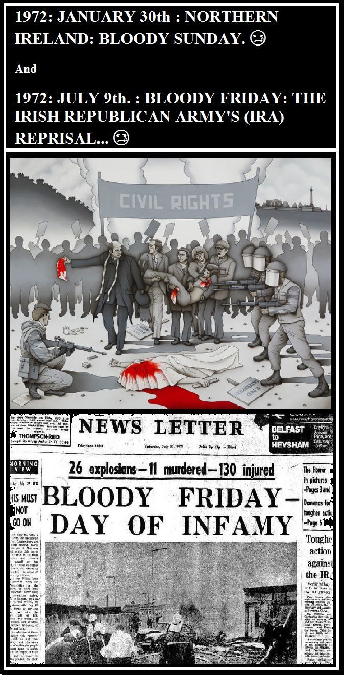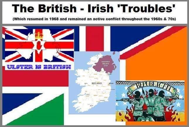 The British / Irish 'Troubles' (as they were called at the time, and as they are commonly referred to by history), go back a very long way. They flared up into violence again in the late 1960s, and 'The Troubles' in Ireland was to be a major feature of the politics and protest of the 1970s.