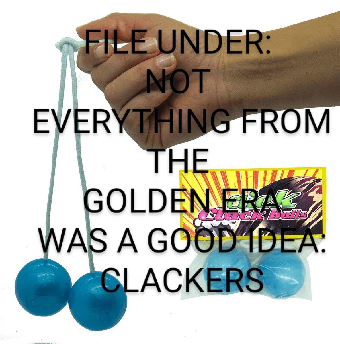Well, I personally didn't have clackers - but I knew people who did, and I tried them. I'm simply no good at that kind of thing. It's like yo-yos: I'm hopeless: I can 'yo' pretty well: letting the thing just drop; but yo - followed by yo: down then up...? I just don't have that skill. Clackers were the same: I could 'clack' - but not plurally: not clackER; not clackety-clack - not me: just the one clack - then everything else after that was flapping and swinging - and damaging my fingers and knuckles...