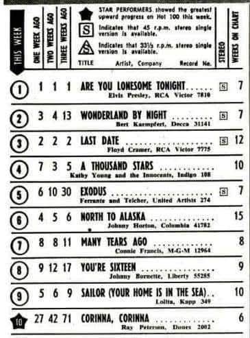 1960: END OF DECEMBER : THE U.S BILLBOARD SINGLES CHART: HOW POP MUSIC CULTURE LOOKED IN THE USA AT THE CLOSE OF THE FIRST YEAR OF THE GOLDEN ERA