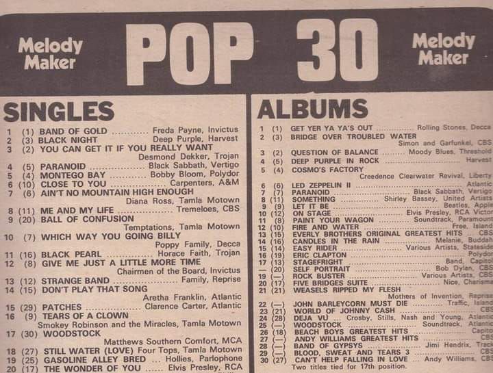 1970: SEPT. / OCT.(?): THE MELODY MAKER MUSIC PAPER UK SINGLES AND ALBUMS CHART...