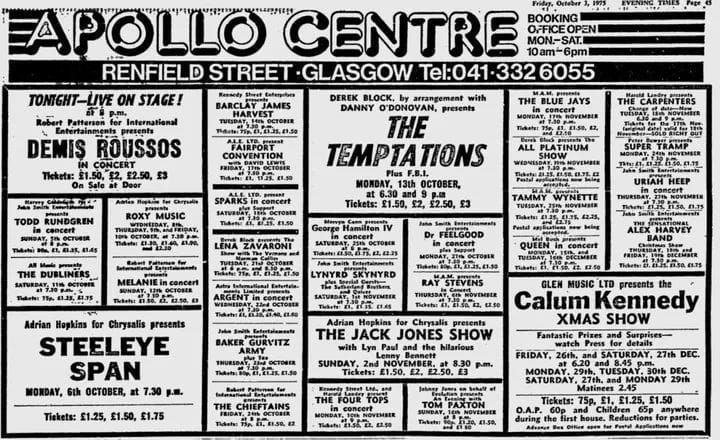 Firstly: a few months earlier I'd had a ticket for the Glasgow Apollo gig on the T.Rex tour: it was a sellout: Bolan was back in the limelight as The Godfather of Punk - and had a successful UK TV show.... But the gig was cancelled on the night - and tickets made valid for the rearranged date. I sniffed and sneered at this singles chart artist 'amateurism' - and gave my ticket away to someone. 😳