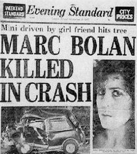 In my case, 'the day the music died' was September 16th. 1977: when my first music hero and idol, Marc Bolan - leader of the Glam Rock band T.Rex: and, in fact, creator of Glam Rock in 1971, was killed in a car crash, when the Mini that was being driven by his girlfriend, Gloria Jones, went out of control on a quiet, tree lined road in Southwest London - and smashed into a tree, in the early hours of that day: September 16th.: killing Marc Bolan and badly injuring Gloria Jones. 😢