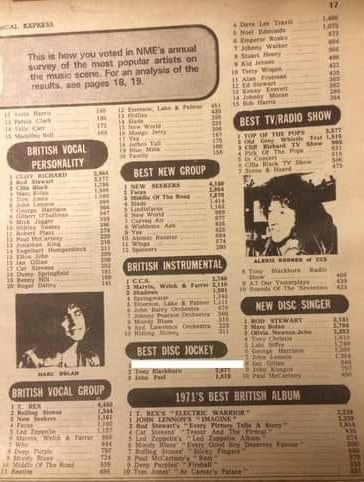 MELODY MAKER READERS' POLL RESULTS 1970.